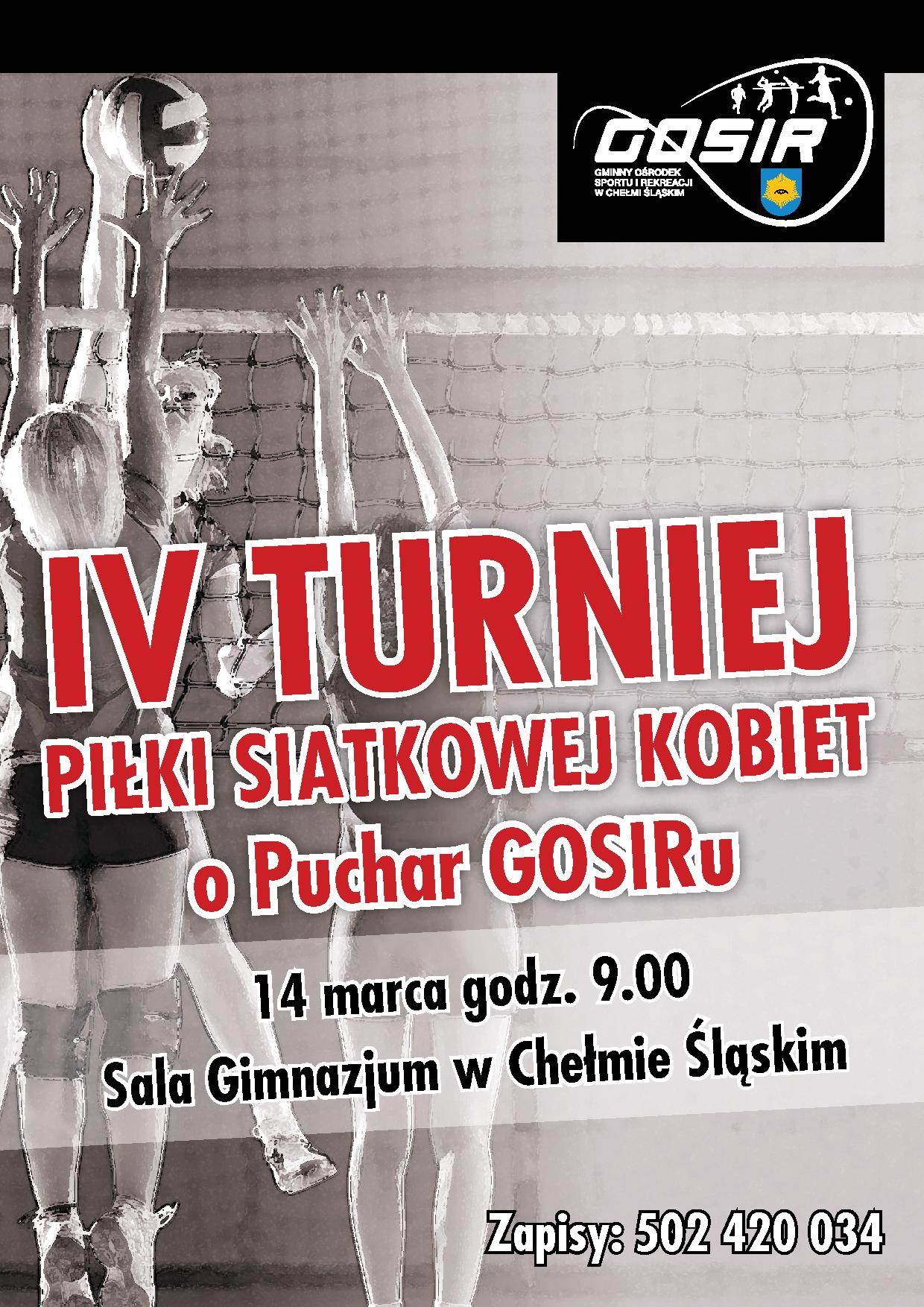 IV Turniej piłki siatkowej kobiet o puchar GOSiR`u odbędzie się 14.03.2015 w Sali Gminazjum w Chełmie Śląskim