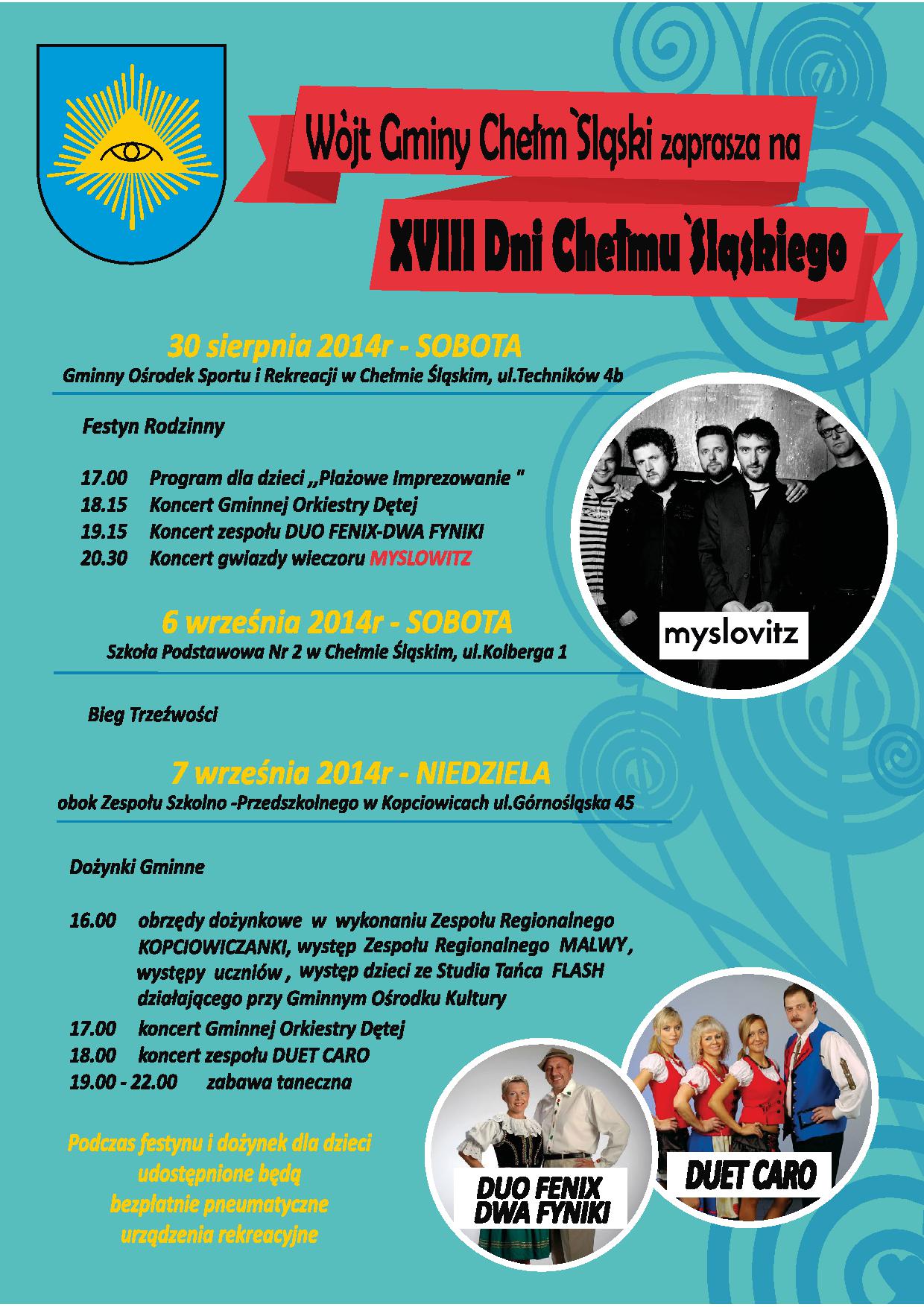 Zaproszenie na XVIII Dni Chełmu Śląskiego