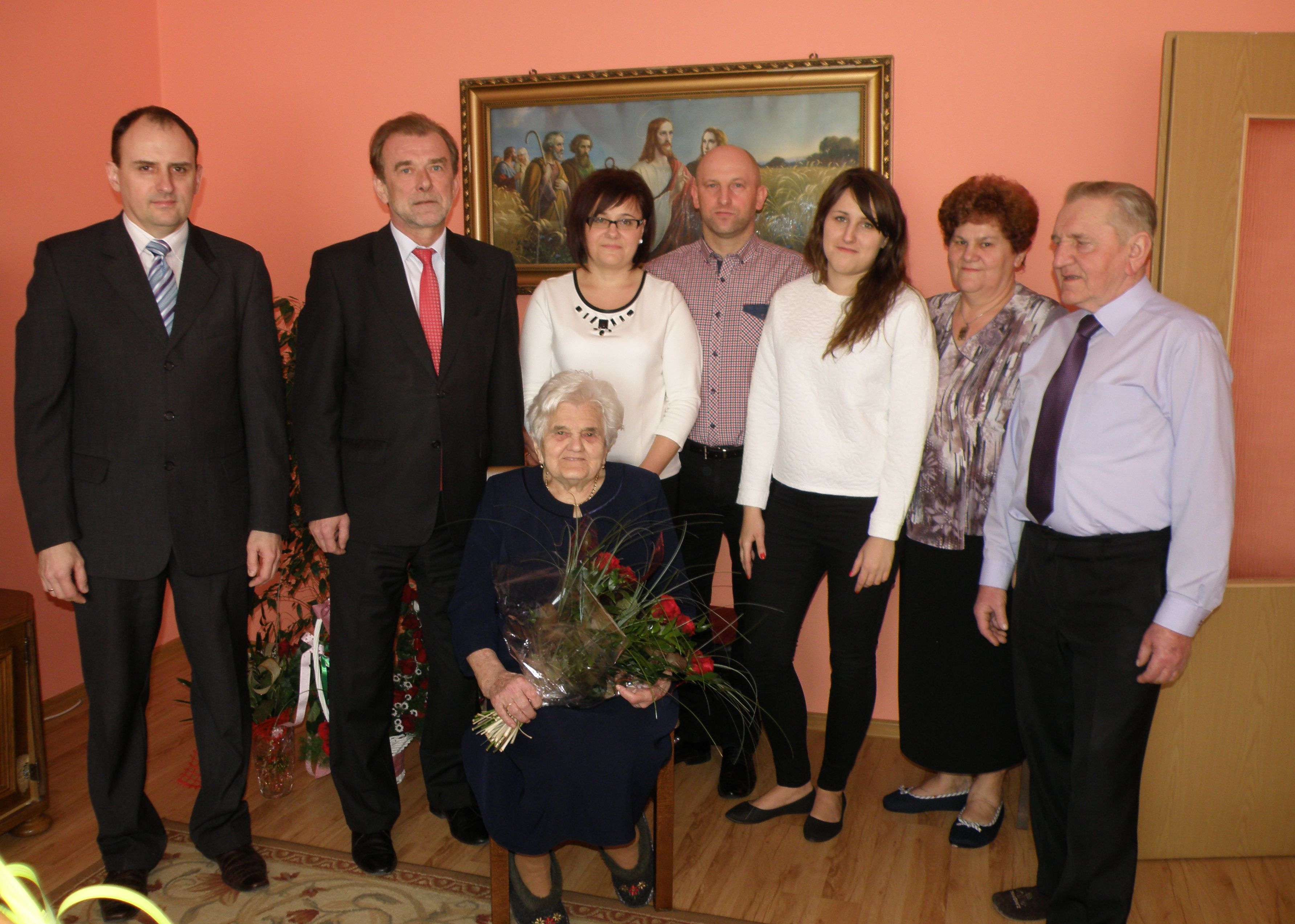 Anna Kusber ? 28 lutego obchodziła 90 urodziny. Z okazji jubileuszu odwiedził ją w domu, wśród najbliższych, wójt Stanisław Jagoda i kierownik USC Czesław Jochemczyk, by wręczyć Solenizantce bukiet kwiatów i ? tradycyjnie już z takiej okazji ? kosz pełen słodkich wiktuałów.