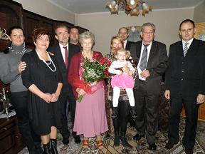Solenizantka doczekała się pięciorga wnucząt i pięciorga prawnucząt, to jej pociechy w jesieni życia. Na nudę nie narzeka, ma zdrowie i siły by wyjść sobie z domu na ogród, lubi poczytać, pooglądać telewizję, ale nie za dużo ? zastrzega ? bo to szkodzi na oczy. Jest osobą pogodną i to pozwala przetrwać jej ? nieraz trudne ? chwile w życiu, których nie brakowało i nie brakuje
