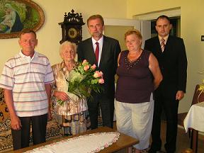 Solenizantka , choć ma już 90 lat, nie wygląda na swój wiek, jest rozmowna, pogodna i pełna życiowej energii. Wychowała razem ze swoim mężem Alojzym troje dzieci ? dwóch synów i córkę. Maż zmarł kilkanaście lat temu, ona została na całym domu. Ma sześcioro wnuków i dwoje prawnuków, do mamy zaglądają dzieci, by jej niczego nie brakowało.
