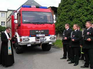 Wóz ratowniczo-gaśniczy to nabytek, który dla chełmskich druhów ufundowała gmina, jest jednym z najnowocześniej wyposażonych w powiecie. Jest to wóz marki MAN ? powiedział naczelnik OSP Łukasz Kolny - wóz jest prawie nowy, sześcioletnie ma tylko używane podwozie, ale całe nadwozie i wyposażenie jest nowe, samochód skompletowany i zaprojektowany został całkowicie przez naszych strażaków. Koszt wozu to prawie 300 tysięcy złotych. Po nadzwyczajnej sesji , w obecności druhów strażaków, radnych, został poświęcony przez proboszcza ks. Piotra Guzego. Wójt Jagoda na ręce prezesa OSP Mariusza Ganobisa, przekazał oficjalnie kluczyki do wozu by służył na pożytek mieszkańców gminy.